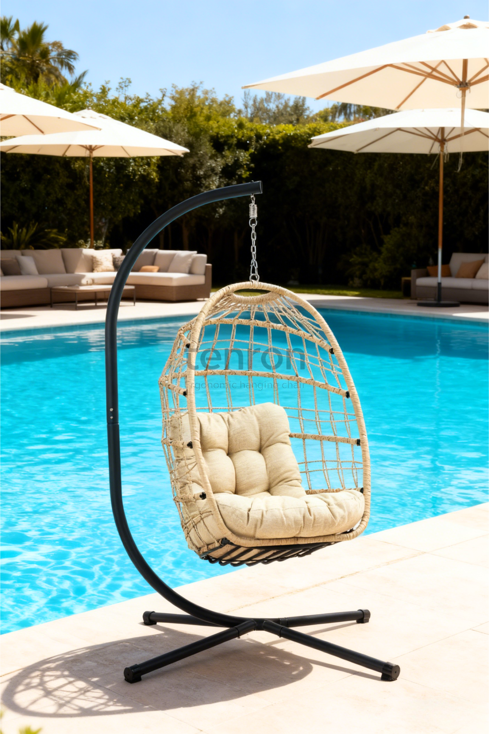 Redefining the balance between ergonomic comfort and logistical efficiency. It represents a breakthrough in the 100% ERGO series, designed for modern retailers who demand both premium comfort and maximum shipping economy. Utilizing our patented foldable technology, we have re-engineered the traditional hanging chair for the global stage.