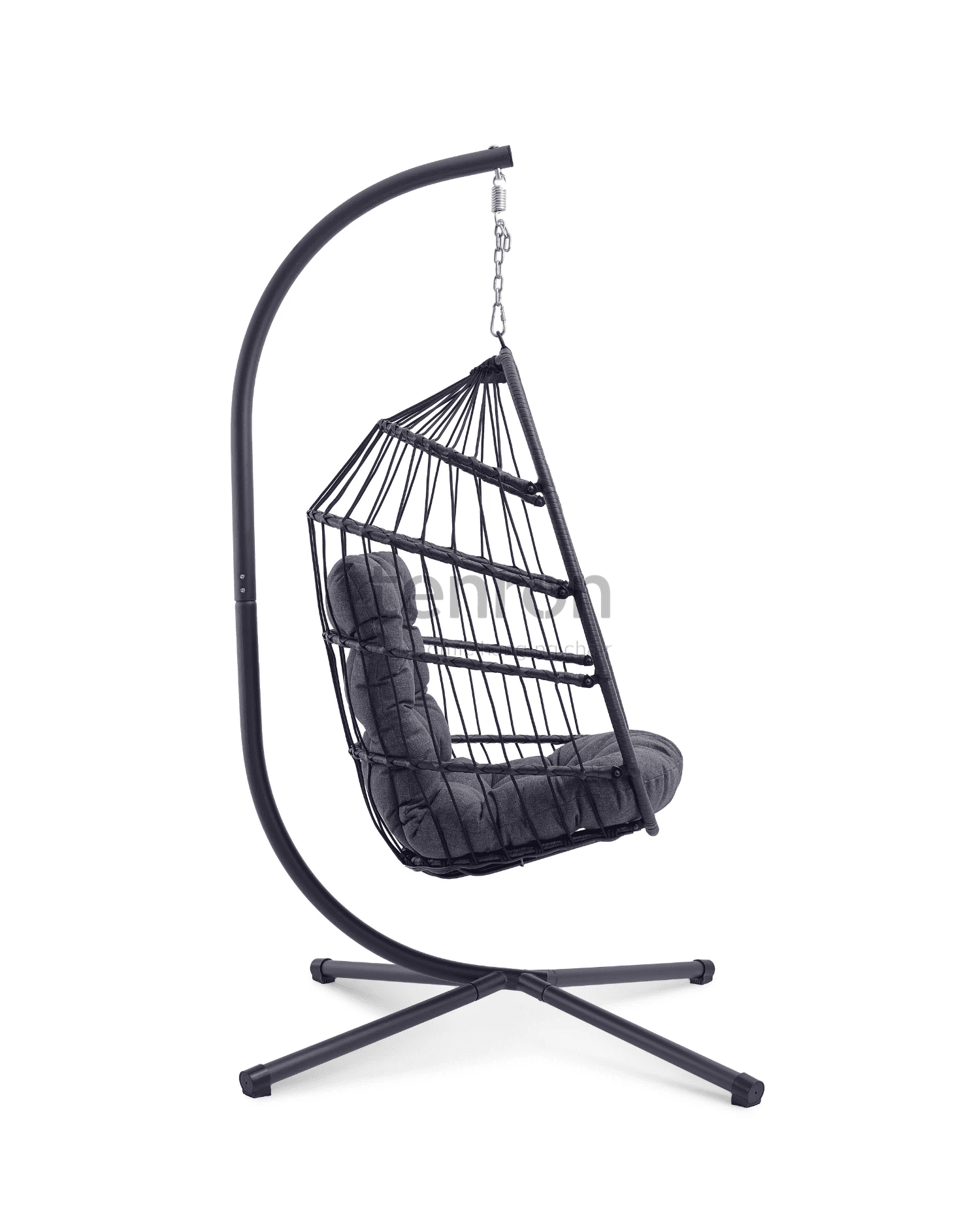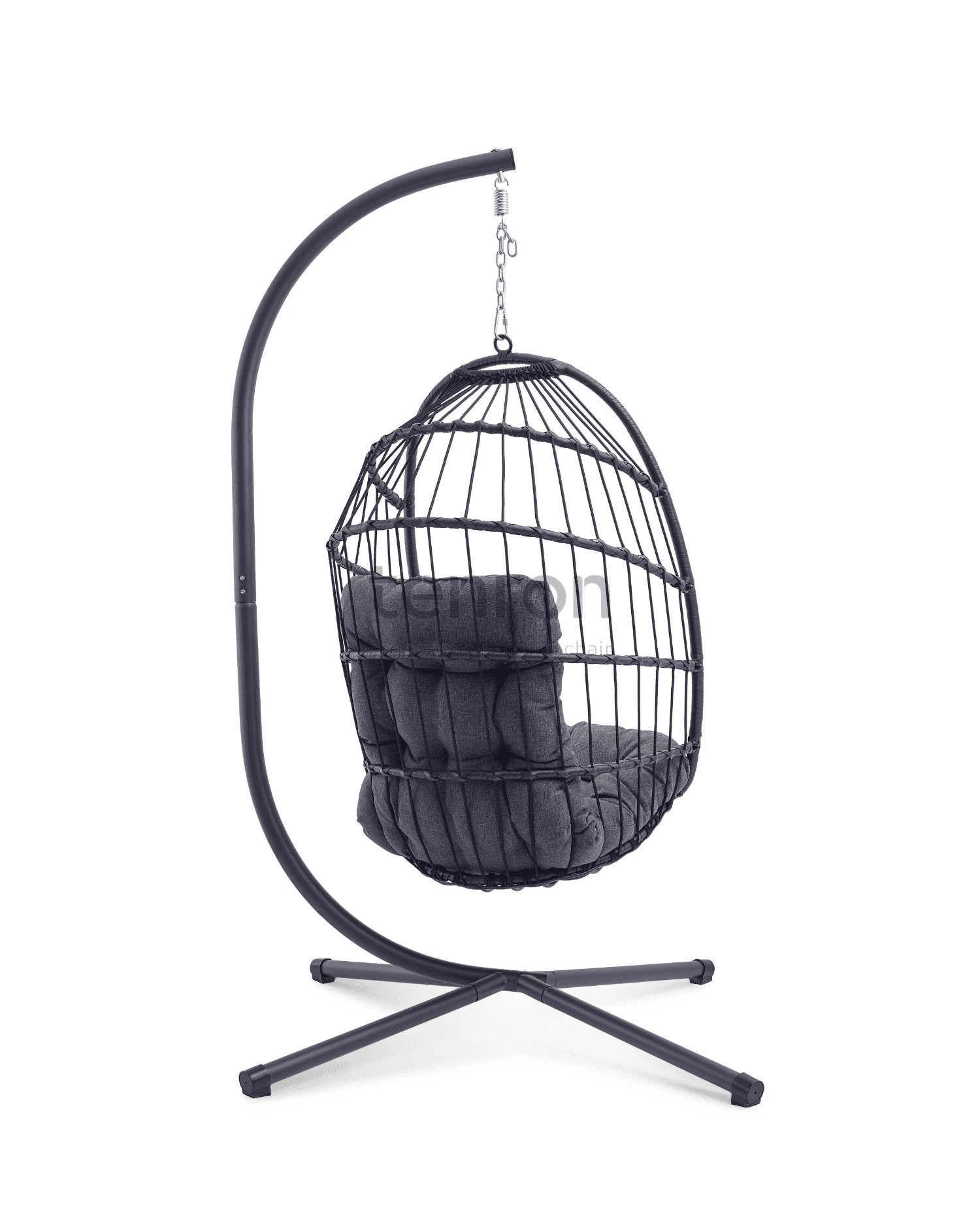 CHLOE black hanging chair with grey cushion